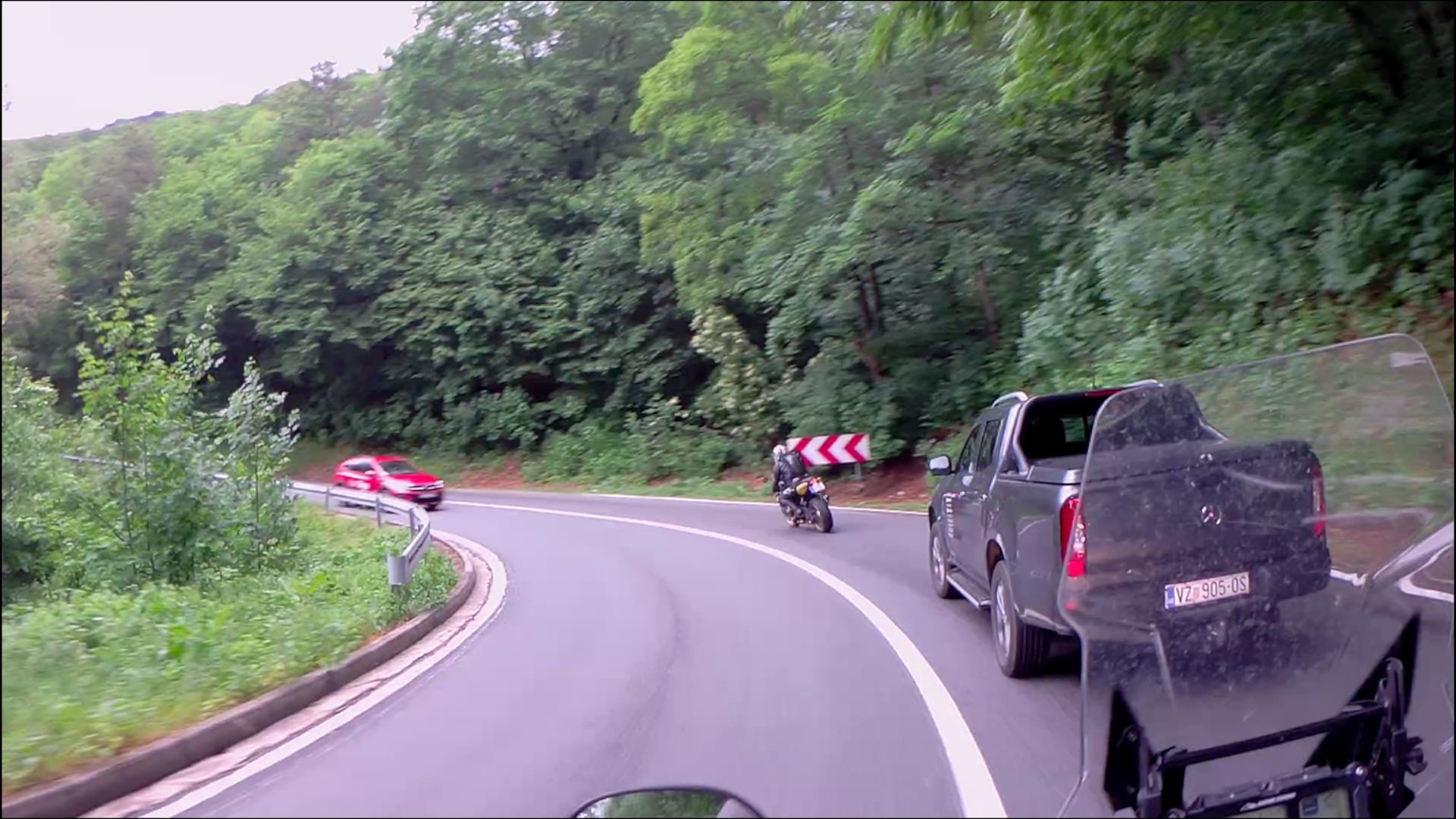 ... ein Raser in voller Schräglage ... er hatte eine Schlange von 10 PKWs hinter sich ...
