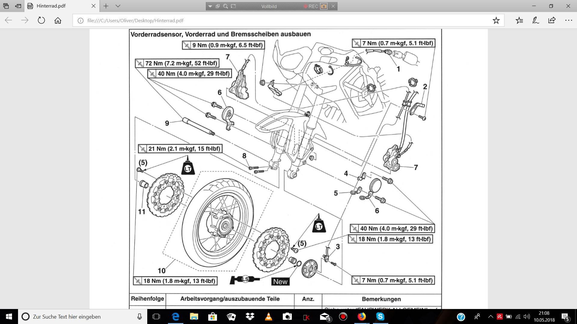 Ich glaubte, dass ich irgendwo im Forum schon mal die Schrauben Anzugsmomente gesehen zu haben.