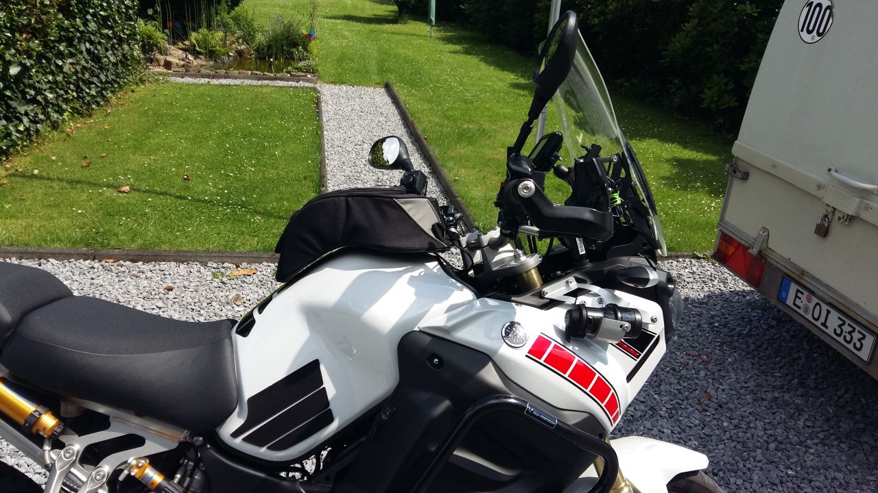 Gestern ist mein "neuer" Tankrucksack eingetroffen. Habe mich für einen HELD TURANO mit Klettverschluss entschieden. Habe ich "Gebraucht, gut erhalten" günstig bekommen. Die Erst-Montage ist etwas fummelig, aber ansonsten ist das mit dem Klettverschluss gut gelöst. Paßt auch gut auf den Tank der XT. Wie fest das ganze dann mit Beladung ist, wird sich zeigen...