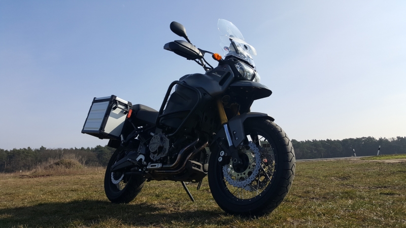 Dann hau ich auch mal ein Bild rein. Mit neuer Scheibe und Koffern. Schönes Wetter, 12 Grad plus und unendlich Sonnenschein.