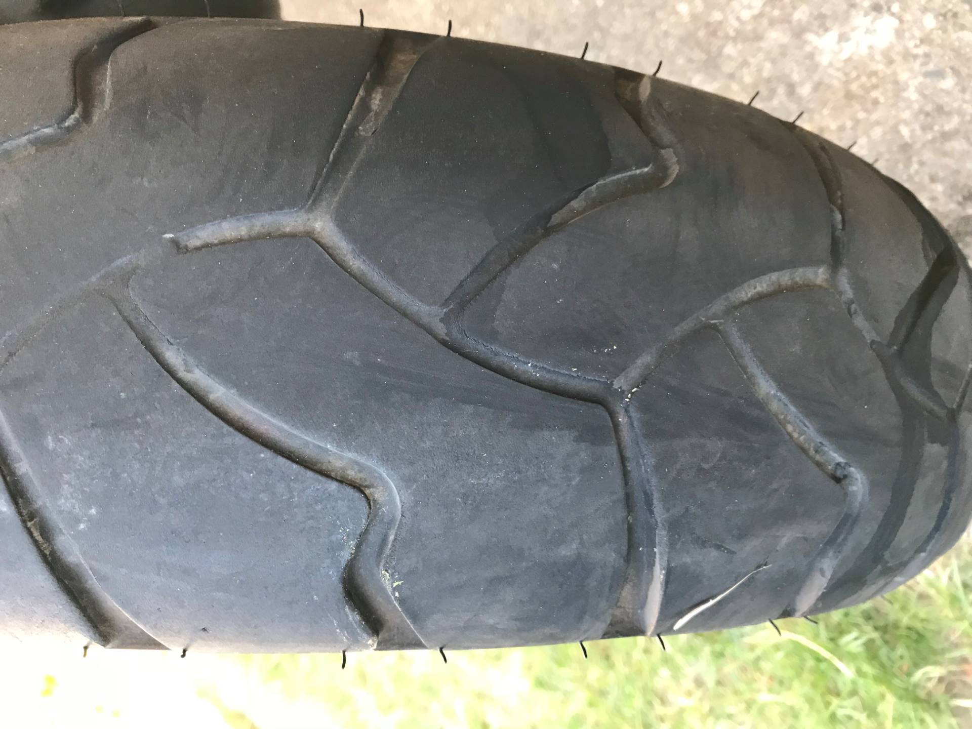 Hier mal zwei Bilder vom Bridgestone A40 nach 10000 Km. Hat mir gut gefallen, der Reifen, trocken wie nass. Bin allerdings kein Hochgeschwindigkeitsheizer und eher auf der Landstraße zu Hause. Nächste Woche gibt's einen kompletten Satz A41 für die XT. Schaun mer mal.
