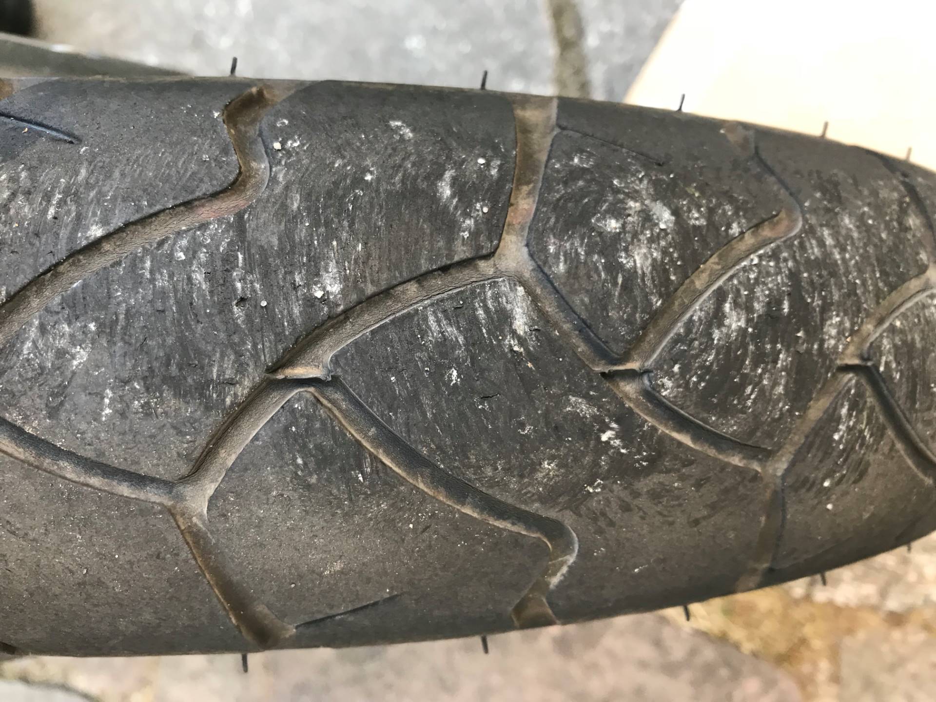 Da -wie ich geschrieben habe - die Maschine mit 5300 km auf dem Tacho gekauft habe, rief ich am Montag tatsächlich den Händler an, um sicher zu gehen, dass die Reifen zwischendurch nicht gewechselt waren