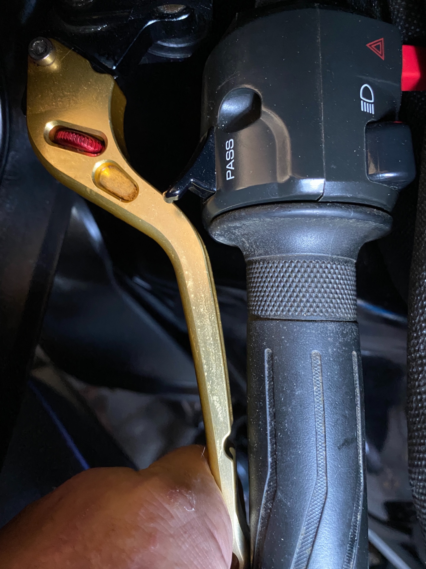 Bin gerade extra raus gegangen und hab`s geprüft. (Der Schmodder ist Wachs) Habe den Hebel auf ganz kurz gestellt wie man an der Aufnahme sieht und ganz bis zum Anschlag zurückgezogen. Der Hebel berührt nicht mal den Griffgummi und schon garnicht das Schaltergehäuse. Es gibt keine Möglichkeit, den Hebel auf Kollision zu bekommen. Es sei denn, die komplette Kupplungseinheit wäre zu weit nach innen montiert.