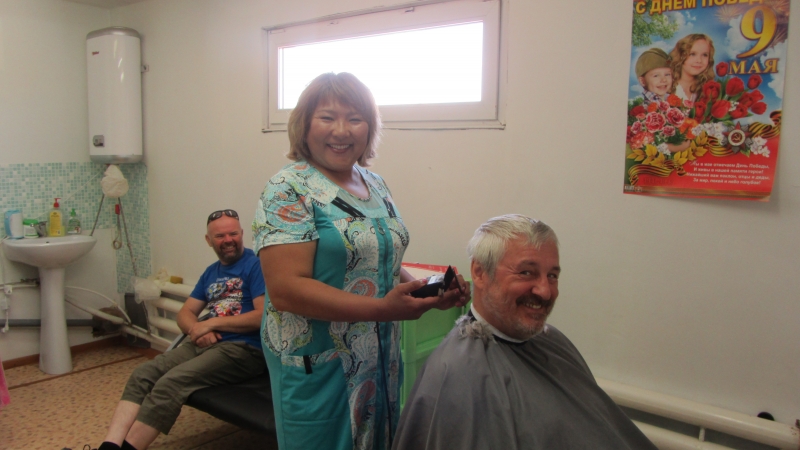 Anschließend zogen wir los zu einem Friseur, um uns einen passenden Haarschnitt für die Mongolei verpassen zu lassen. Ein bisschen mussten wir suchen, doch dann standen wir im Friseursalon und die Friseurin konnte mit ihren Handwerk beginnen. Zuerst wurde Thom hübsch gemacht, dann kam ich an die Reihe. Die Seiten machte sie schön kurz, aber oben wollte sie die Haare länger stehen lassen, aber das sah nicht wirklich gut aus, also entschied ich mich dann für den Klassiker, 9 mm :-)