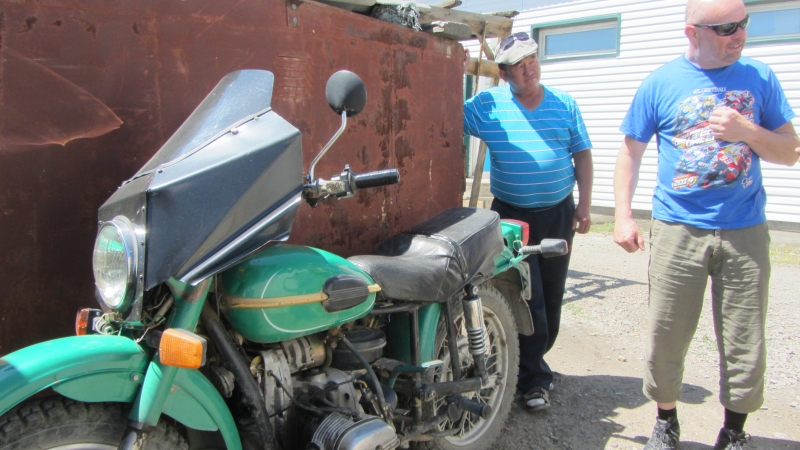 Danach gings wieder zurück und wir lümmelten uns auf der Veranda und warteten darauf, dass wir etwas Schatten bekamen, um unsere Wartungsarbeiten an den Moppeds durch zu führen. Auf dem Rückweg sahen wir noch eine alte russische Ural, während wir so am gucken waren kam der Besitzer und ließ es sich nicht nehmen, sie anzukicken. Wie er versprochen hatte kam sie auf den ersten Kick :klatsch: