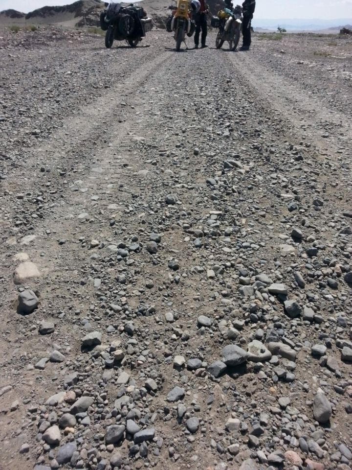 Nach dem Essen ging es dann über die Piste weiter. Irgendwann erreichten wir die Stelle, wo die Bauarbeiten endeten und nur die Piste mit ihren vielen Spuren übrig bleib. Noch gut eine Stunde hatten wir auf ihr zu fahren, bis die Abzweigung kam.