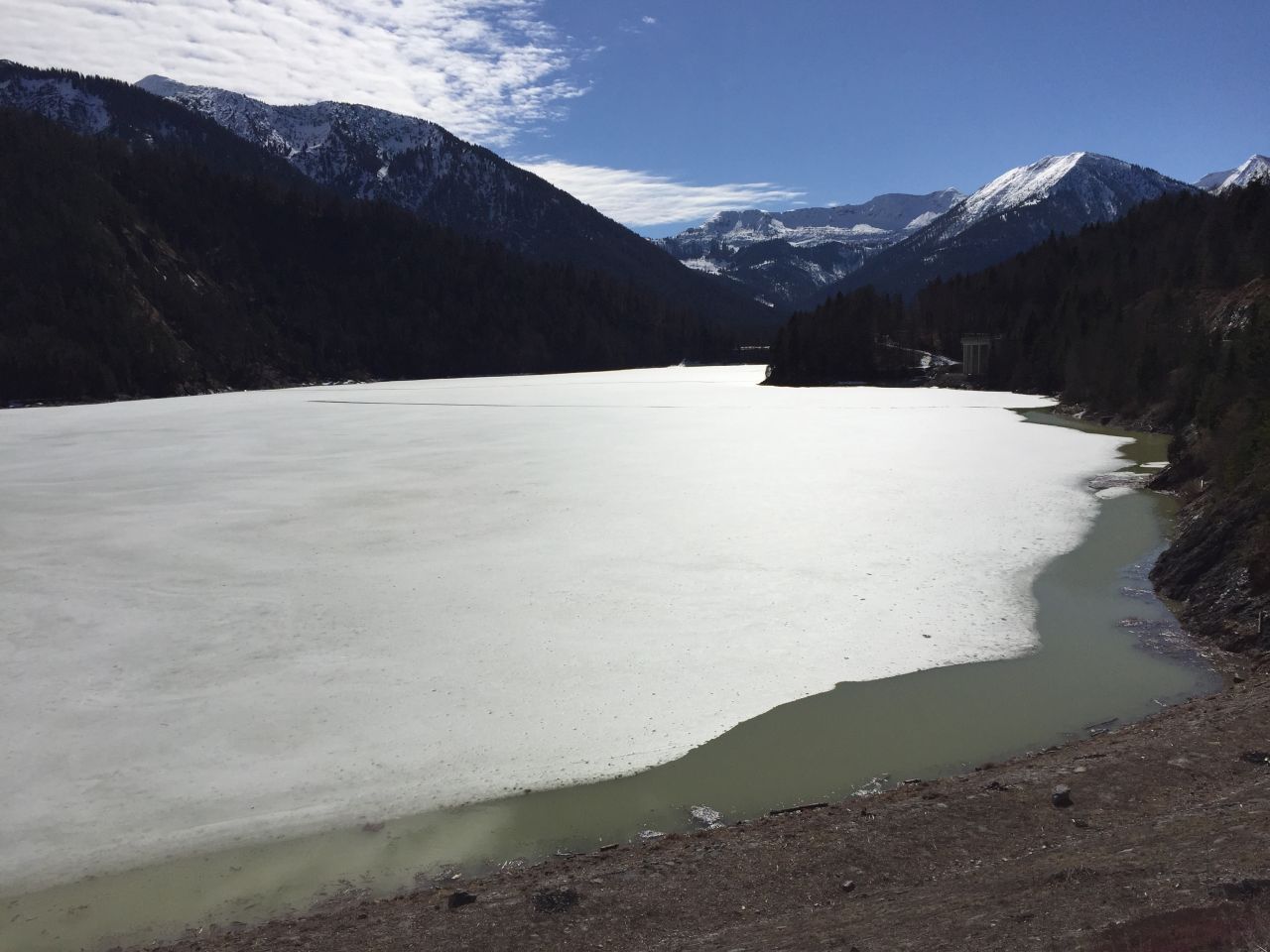 Kalt aber schön. Über Bad Tölz, Lenggries und Sylvenstein Stausee in die Engg / Karwendel.
