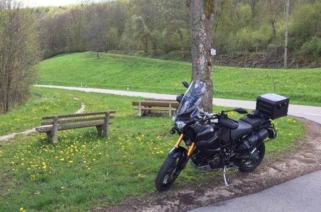Möppi auf dem Parkplatz abgestellt und ein paar Meter dem Wanderweg gefolgt, wie das so ist mit Möppiklamotten wandern......