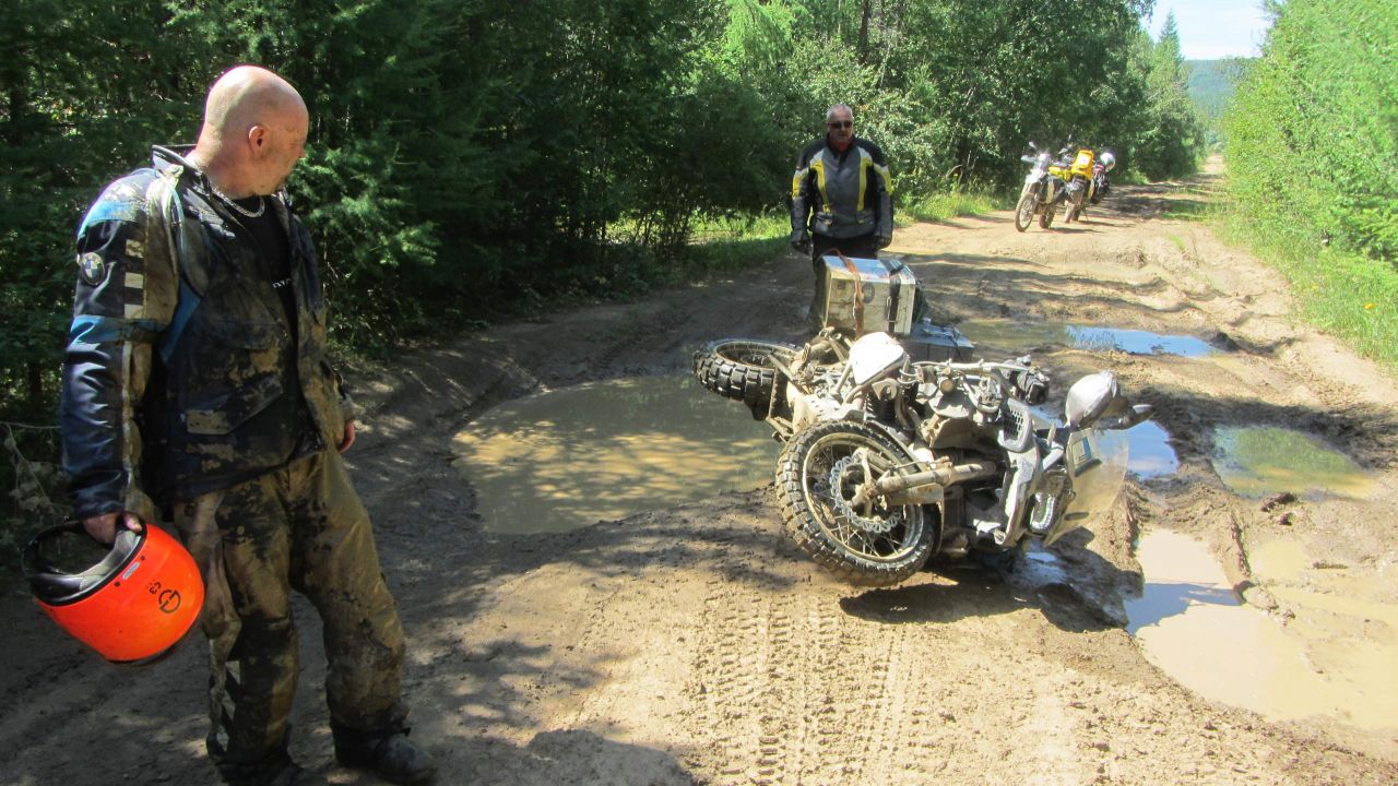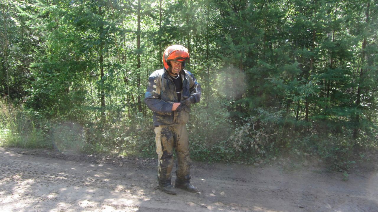 Wieder zurück bei den Moppeds kommt uns eine Touristengruppe entgegen, die uns gute Fahrt wünschen. Wieder auf den Moppeds geht es zurück zur Hauptstraße, diesmal sind Thom und ich gut drauf und wir geben ordentlich Gas und fliegen über die Piste