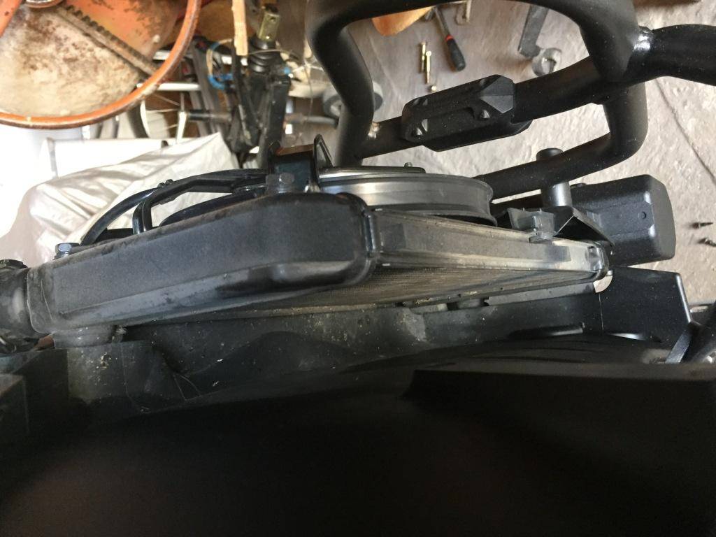 von meiner maschiene kann ich sagen das es nicht gab was eine torsion des kühlers verursachen hätte können ohne das die verkleidung dabei hobs gegangen wäre. fehlkonstruktion sage ich deswegen weil der vierte haltepunkt fehlt