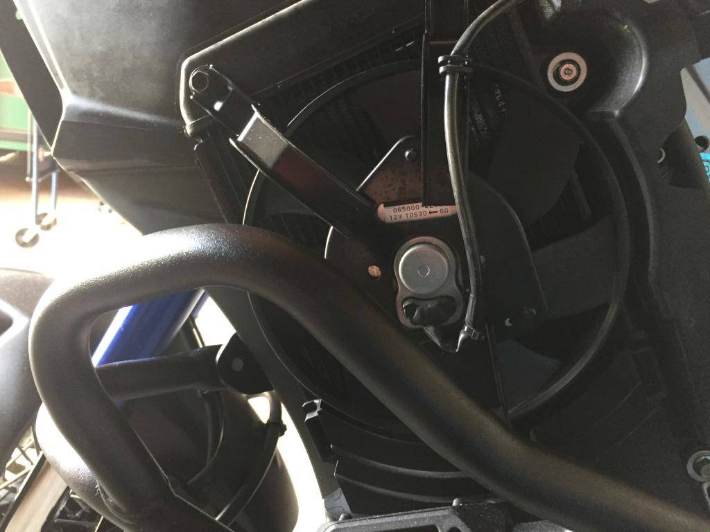 der kühler hat in sich, wie auf den bildern deutlich zu sehen ist, eine vorgegebene eigenspannung oder verzug, torsion ( wie man es nennen will) und das ist aus meiner sicht das problem. der kühler braucht einen vierten haltepunkt um die torsion im rahmen zu halten. dann kann auch gewärleistet werden das der lüfter nicht einlaufen kann. da ich als verbraucher nichts für die konstruktion der aufhängung kann u auch für die verbaute qualität des kühlers ist yamaha für mich daran das auszubügeln.