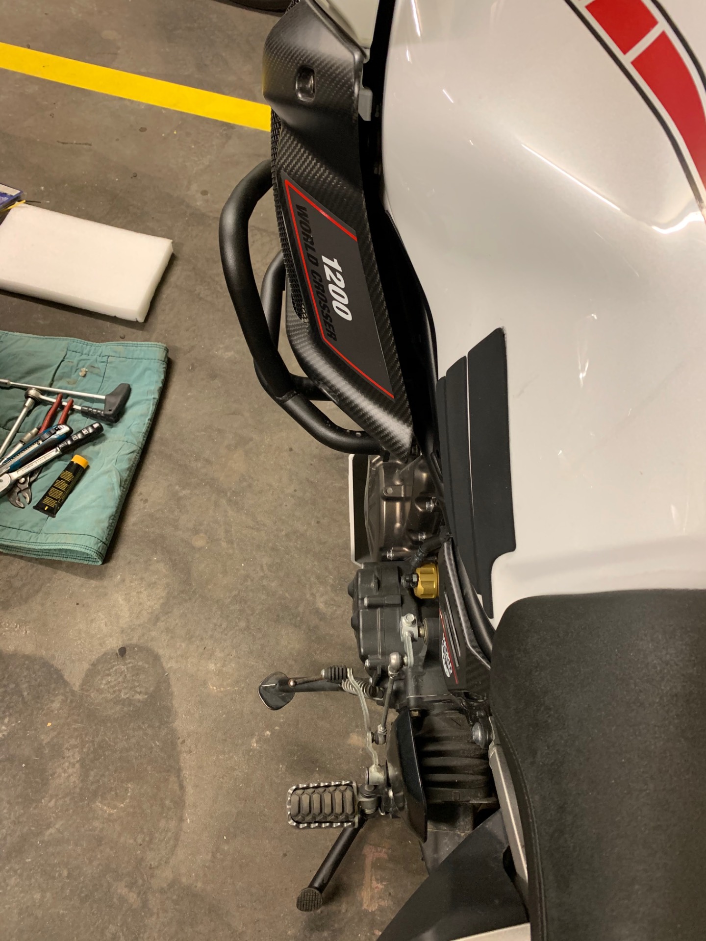 bisher war ich mit dem originalen Sturzbügel wie er an der Worldcrosser XT 2012 montiert wurden, unterwegs.