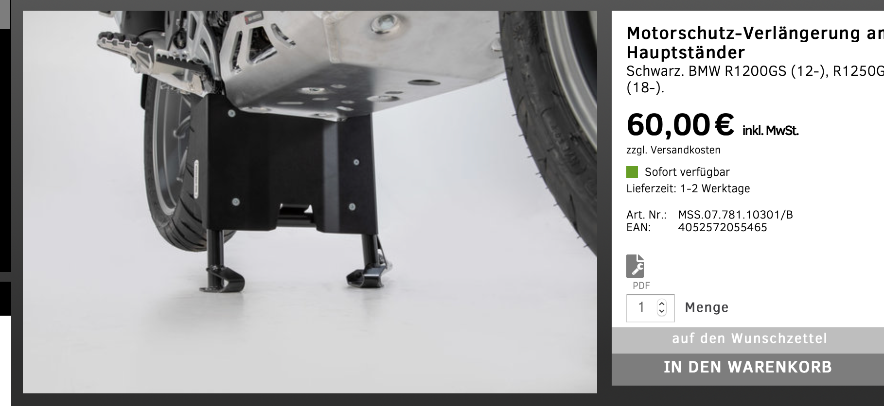Ja genau sowas meine ich. Allerdings weniger als Schutz für den Hauptständer sondern eher als Spritzschutz und Schutz für die untere Federbeinanlenkung ...