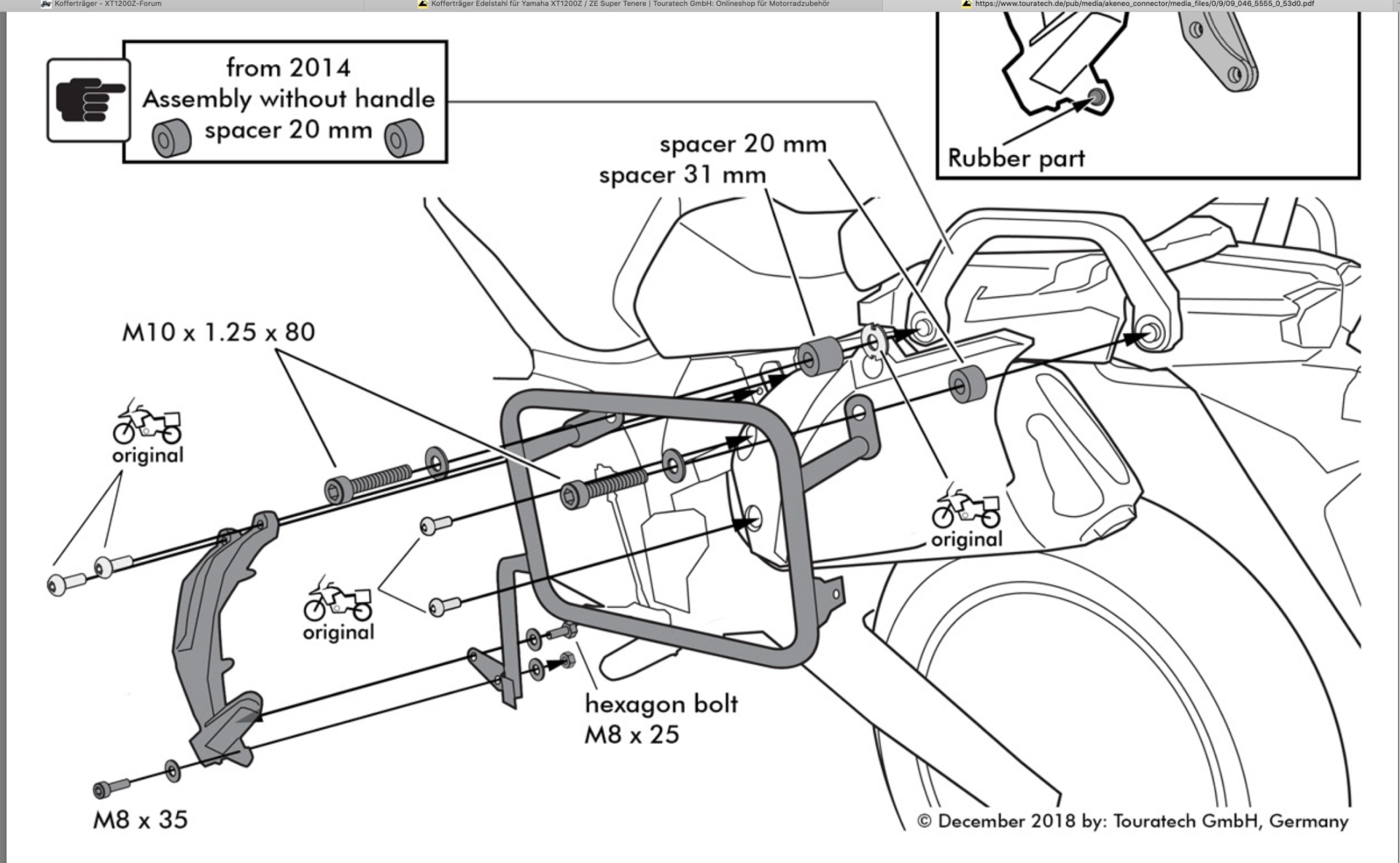 Hab für meine XT einen Kofferträger H+P, leider fehlen zwei Schrauben. Zylinderschrauben mit Innensechskant M10x90 dachte ich.