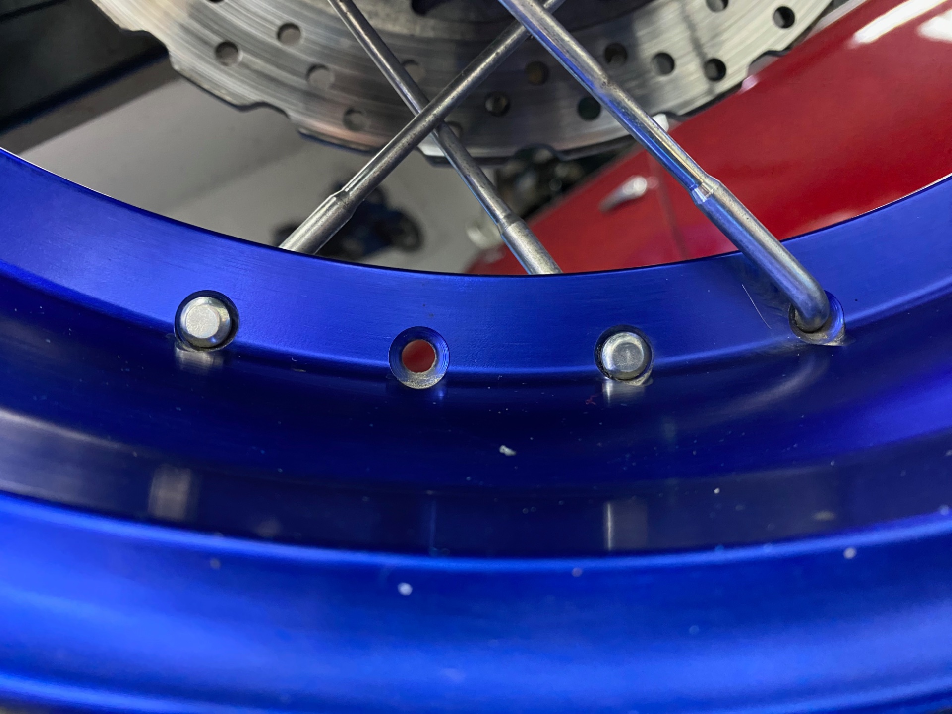 was mich gestört hat bei den edelstahlfelgen von o-t-r: die speichenmutter ist nicht wie bei yamaha ein sechskant, sondern ein schlictz mit bohrung. dadurch ist es sehr schwierig, mit dem drehmomentschlüssel korrekt anzuziehen.