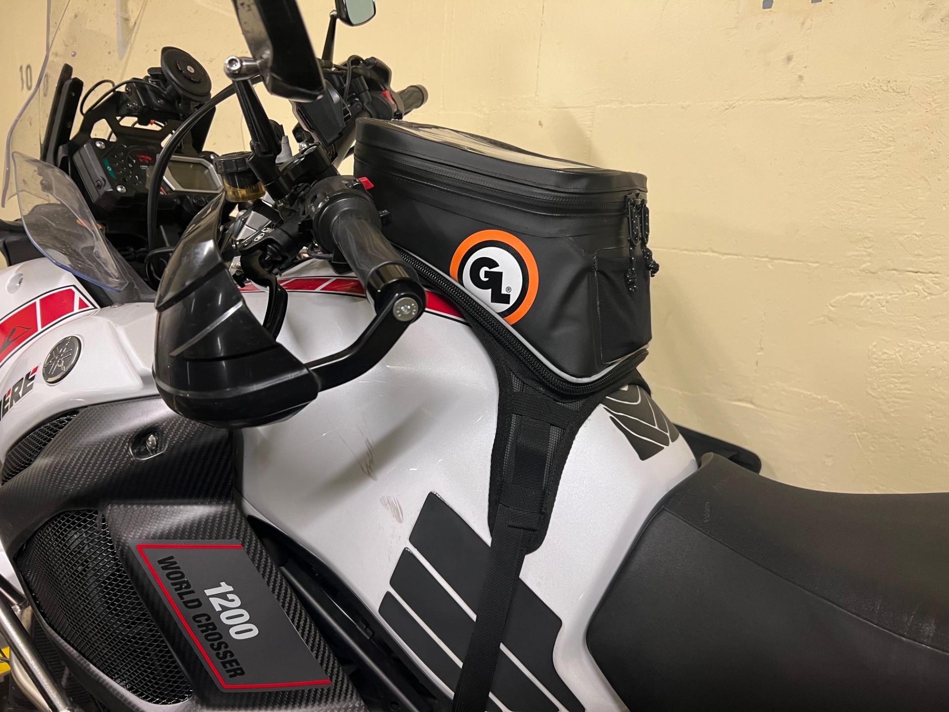 Ich finde der Giant Loop passt sich gut dem Tank an. Die ersten hatten als Verbindung unten einen umlaufenden Reißverschluss und waren nicht wasserdicht.