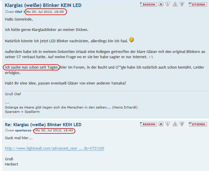 Natürlich könnte ich jetzt LED Blinker nachrüsten, allerdings bin ich faul.