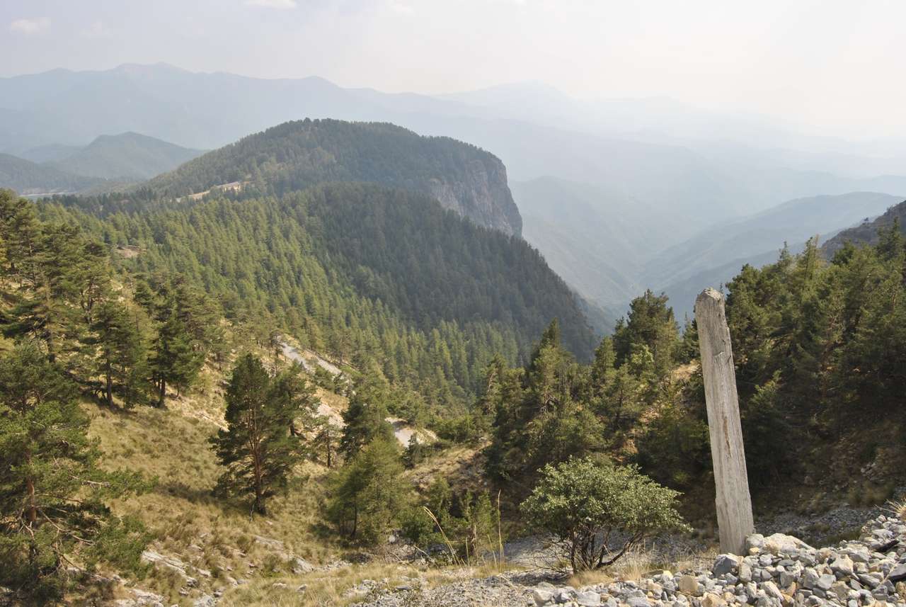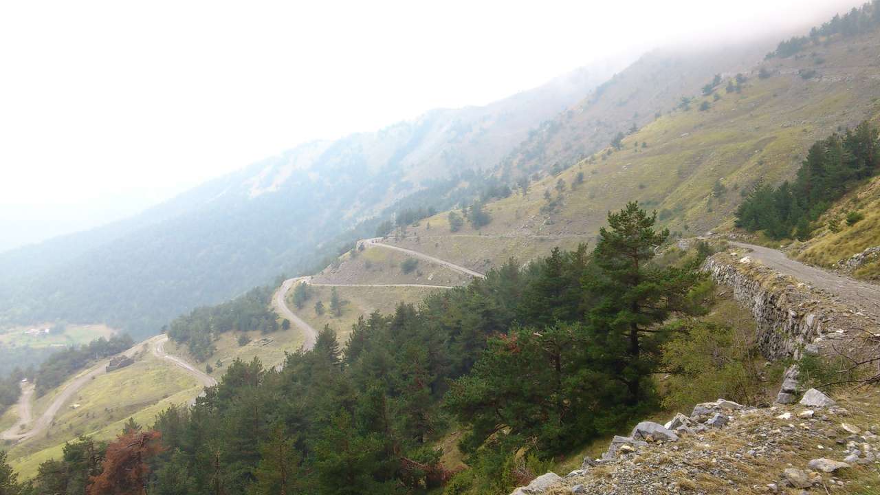 In Tende haben wir dann Roland mit seiner XT600 getroffen, der auch auf dem Weg nach Triora war. Noch ein Stückchen Asphalt, dann ging es links ab über La Brigue in Richtung Col Linaire. Zuerst noch asphaltiert, dann auf Schotter wechselnd gings relativ zügig den Berg hoch, allerdings war dann die Passage durch den Wald doch etwas rutschig und der Heidenau zeigte leichte Schwächen, für Matsch hat er dann doch zu wenig Profil. Aber es ging dann doch noch einigermaßen, dafür hatten Stiefel und Mopped eine dezente Schlammschicht bekommen. Oben dann wieder eine Verschnaufpause für Mensch und Maschine. Für mich überraschend war da aber doch einiges los, gefühlte 10 GS in allen Variationen, einige KTM und andere Enduros trieben oder besser wurden über den Pass in Richtung Norden getrieben.