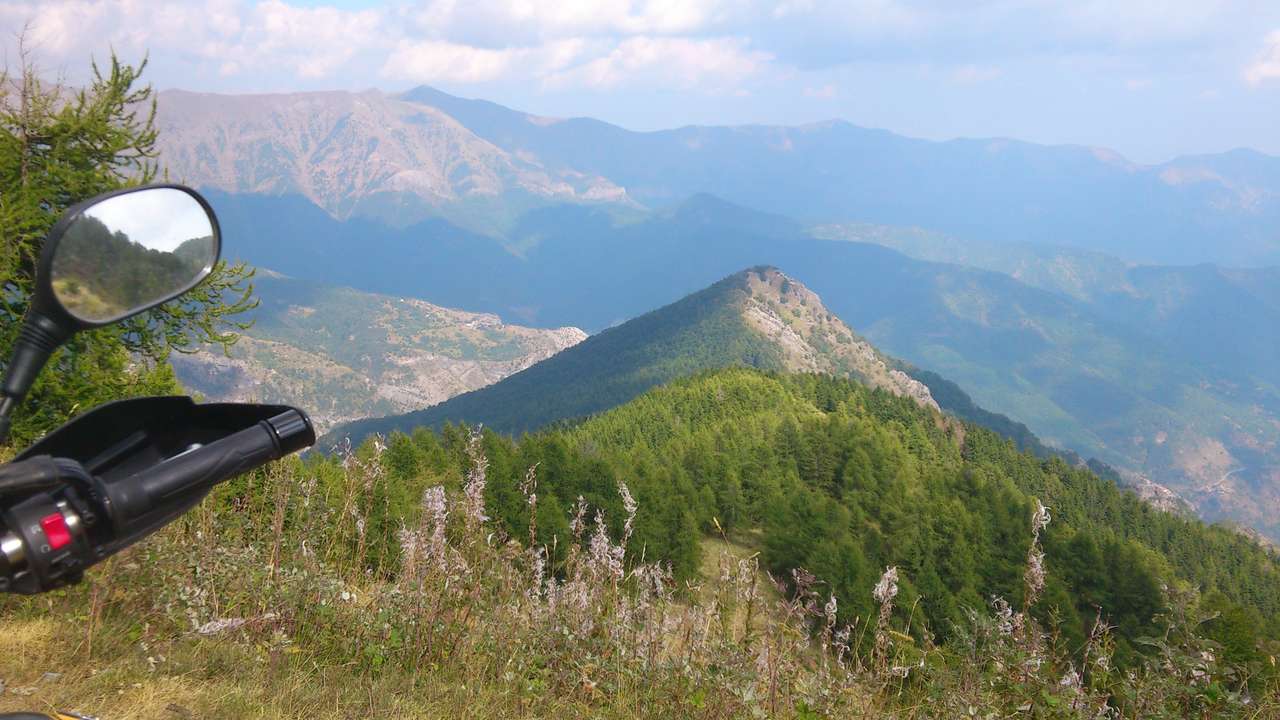 Nach dem guten Frühstück haben wir dann die Moppeds gesattelt. Noch kurz tanken und dann sollte es zum Colle delle Finestre gehen, ein alter Bekannter von mir, dessen Verlängerung, die Assietta-Kammstraße letztlich zu meiner Vorliebe für Enduros geführt hat. An der Tankstelle haben wir dann noch Ewald mit seiner XT1200Z getroffen, nach ein paar Sätzen und gegenseitigem Gute Fahrt wünschen sind wir dann zum Finestre aufgebrochen. Die Auffahrt war ein bisschen rutschig, weil es leicht am Nieseln war, aber ansonsten lief alles glatt. Oben dann die obligatorische Zigaretten und Fotopause. Leider reichte die Zeit nicht für die Assietta, aber ich bin bestimmt nicht das letzte Mal in der Gegend. Die Abfahrt war dann geprägt von den tollen Ausblicken auf die Befestigungsanlagen und ins Tal. Unten angekommen ging`s dann auf gutem italienischen Asphalt zügig weiter, schließlich wollten wir gegen 16:00 Uhr in Triora sein. Wir sind dann zügig Landstraßen über Pinerolo, Saluzzo und Cuneo in Richtung Tende gefahren. Ab und an gab es ein paar kleine Schauer, aber die haben nicht weiter gestört, da es so um die 20° war. Dann die Straße zum Tende-Pass rauf und oben im Refugio lecker zu Mittag gegessen. Anschließend ging`s die berühmten 48 Kehren nach Frankreich hinunter. Während sich auf der Passhöhe noch die Wolken breit machten konnten wir nach den ersten Kehren die wunderbare Aussicht auf Tende und die noch vor uns liegenden Kehren bewundern. Auch wenn der Tende nicht unbedingt die Herausforderung darstellt, der Blick ist einfach unglaublich und so bin ich ganz gemütlich runter gerollt und hab die herrliche Aussicht genossen!