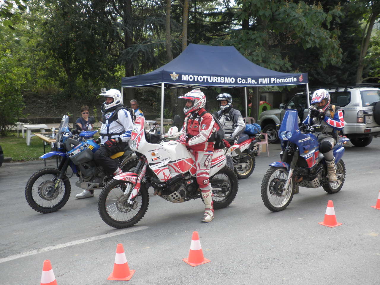Er ist in 2010/2011 mit einer XT1200Z runde 100.000 km um die Welt gefahren, und das ohne Defekte von Seiten des Motorrades. Das gemeinsame Mittagessen mit ihm war interessant, auch wenn nur wenig mitbekommen haben, weil das Gespräch auf Italienisch geführt wurde. Viel spannender für mich war das Teilnehmerfeld, gestartet wurde immer in kleinen Gruppen von 3 oder 4 Moppeds. Und es war alles vertreten, was als Enduro auf dem Markt war oder ist. Natürlich auch etliche XT1200Z, relativ wenige 1200 GS, wenn dann eher als HP2. Aber viele 80 und 100 GS, teilweise wirklich super aufgebaut mit langen Federwegen. Sogar 2 Stelvio waren im Starterfeld. KTM als 1 oder 2 Zylinder, Aprilia, Cagiva, Honda AT, Transalp und Dominator, ein paar Kawasaki und reichlich Suzukis, sogar ein paar BIGs und wirklich viele Ténérè, von der 600er bis zur 1200er. Alle mit Zusatzscheinwerfern, viele mit Zelt und einige sogar mit Kletterseilen als Gepäck. War schon spannend, diesen Fahrerinnen und Fahrern beim Start hinterher zu gucken.