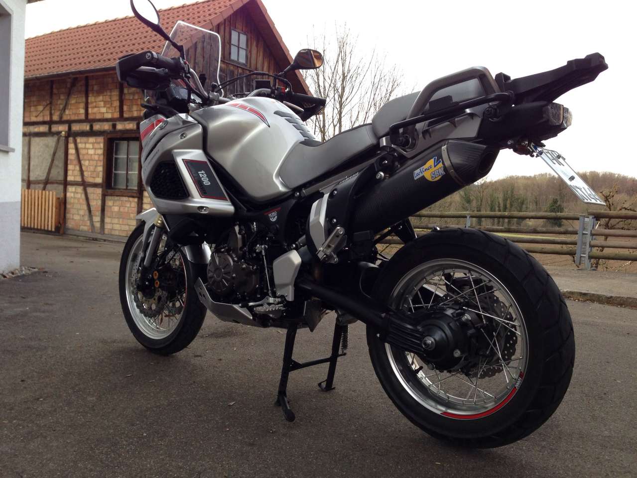 Sag, da du deine auch hinten höher gestellt hast, geht das Hinterrad am Boden an ? wenn sie auf dem Hauptständer steht .