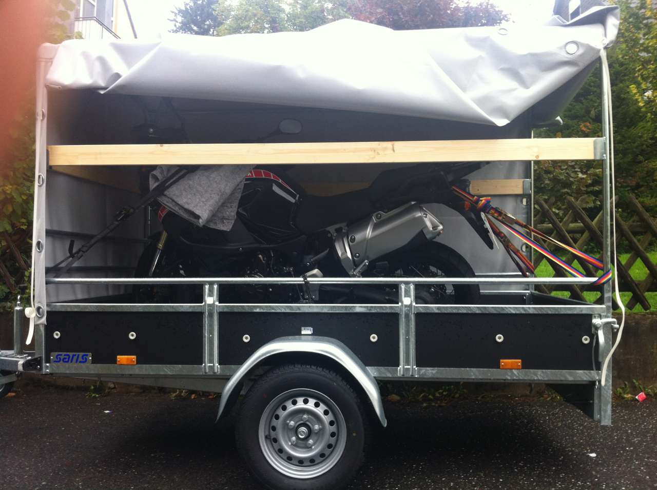 "Special" machen lassen für zwei Motorräder, weil einen gemieteten Motoradanhänger auch die Breite hat.
