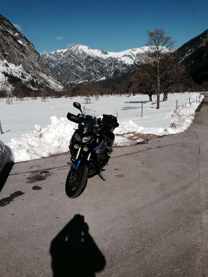 Hatte heute freiundhabe das Traumwetter in den Alpen nochnal genutzt, um in die Eng zum Großen Ahornboden zu fahren, der sich schon tief verschneit präsentiert. In der Sonne wars nochmal angenehm, im Schatten etwas frisch,aber wozu gibts schießlich Funktionsbekleidung. War ein TRaumtag.
