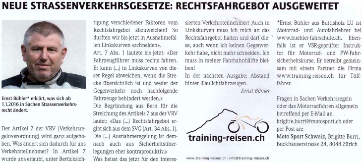Schweiz Rechtsfahrgebot ab 1.1.2016