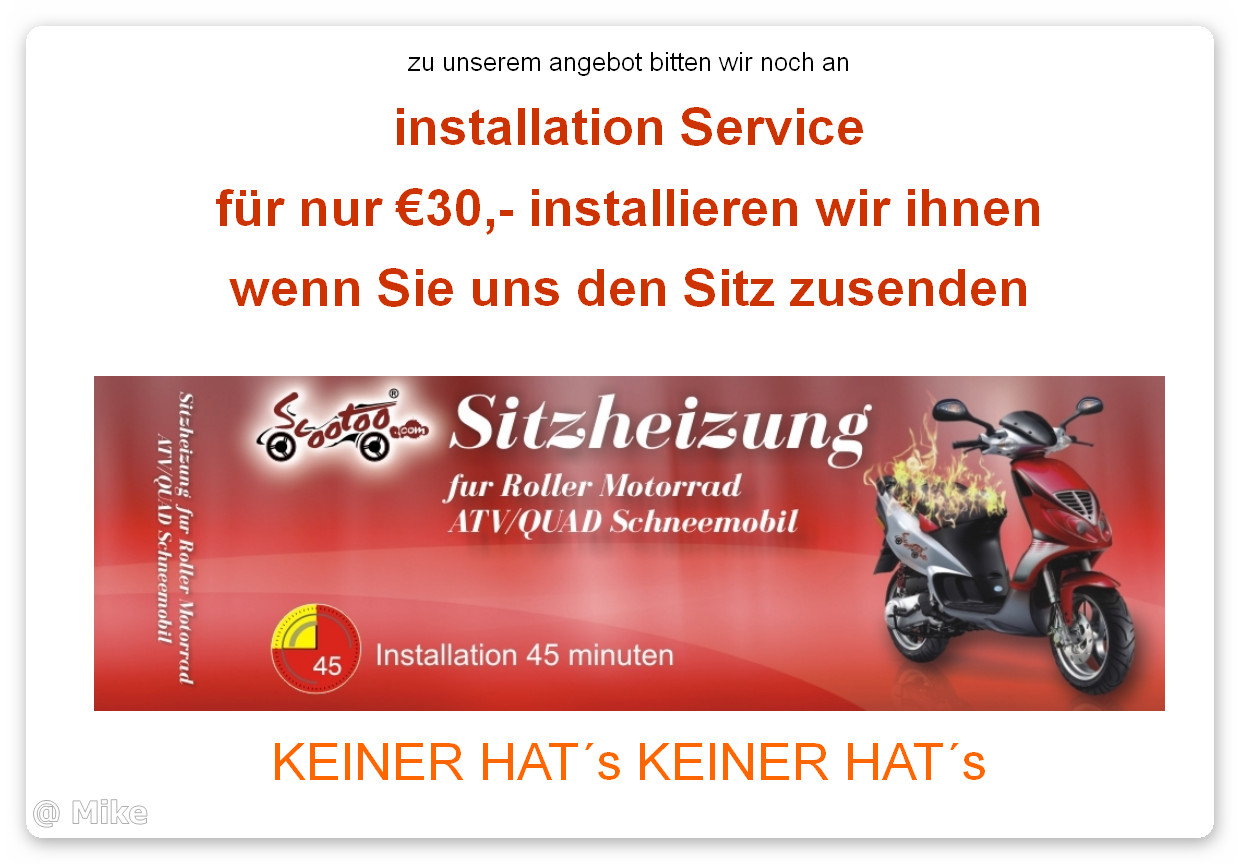 Hab bisher mal bei Sitzbank Kiel geschaut, dort verlangt man für die Heizung mit Schalter und Einbau komplett 150,-!