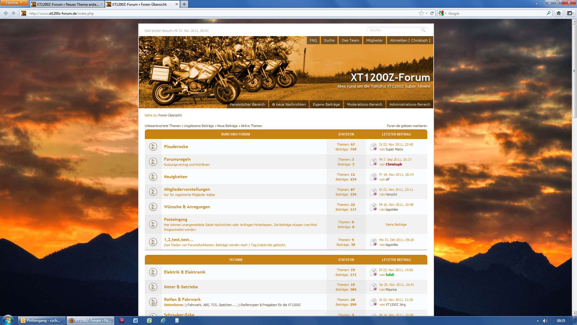 Habe gestern Abend an einem neuen Theme gebastelt, das 1) alle Möglichkeiten unserer Forensoftware (z.B. "Zum ersten ungelesenen Beitrag springen") zugänglich macht und 2) bei zukünftigen Software-Updates besser kompatibel bzw. leichter anzupassen sein sollte als tenere2. Grund: er basiert direkt auf dem mitgelieferten Standard-Style prosilver, behebt aber dessen Nachteile (Unübersichtlichkeit bei Breitbildschirmen, "langweiliges" Aussehen). Das sieht bisher so aus (lässt sich hier aber erst verwenden, wenn es fertig ist):