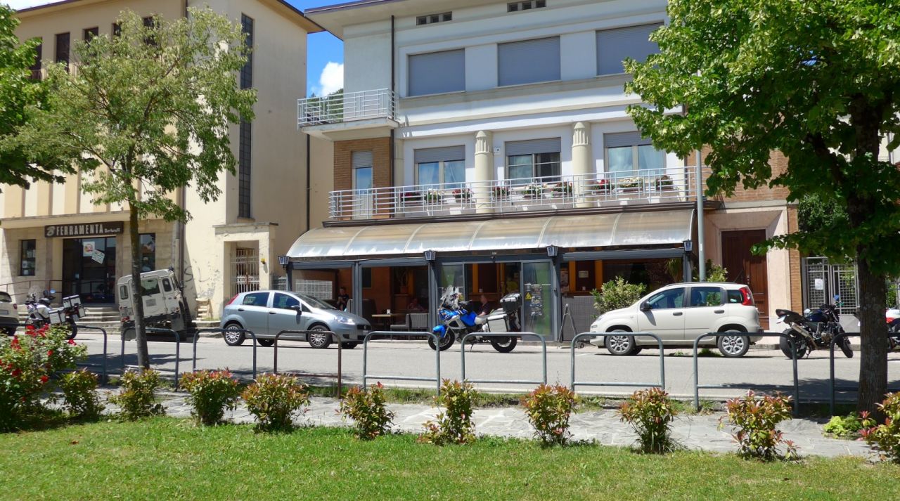 Einfach wurde die Umfahrung nicht, es fehlten einfach die Alternativstraßen. Wir entschlossen uns zunächst wieder nach Norden zu fahren, um dann über eine westliche Route auszuweichen. Natürlich hatten wir die Arschlochkarte gezogen. Die gewählte Straße war keine Straße, sondern eine einzige Zumutung. Schlaglöcher gab es nicht aber Fahrbahnabsenkungen und Wellen. Über 13km hoppelten wir mit beschaulichen 40km/h auf und ab. Eigentlich war Mittagszeit und ein Restaurant wäre nicht schlecht gewesen. In dieser verlassen Gegend gab es aber nicht einmal eine Bar. Nach 48km erreichten wir völlig durchgeschüttelt wieder unsere geplante Route. In Bardi fanden wir dann doch noch eine Kneipe, die uns etwas Essbares zur Verfügung stellte. 60km Italien ohne Restaurant oder Pizzeria, das kann doch nicht wahr sein. Wir stellten die XTs jeweils auf einen PKW-Parkplatz und setzten uns auf die überdachte Terrasse. Ein Land Rover Fahrer wollte auch noch parken, die Parkplatzrestlänge hinter der XT von Klaus reichte aber nicht aus. Kurzentschlossen fuhr er seinen Jeep quer auf den Gehweg und dann 3 Stufen die angrenzende Treppe hoch. Bis jetzt war es nur der normale Wahnsinn. Man sollte aber den Tag nicht vor dem Abend loben.