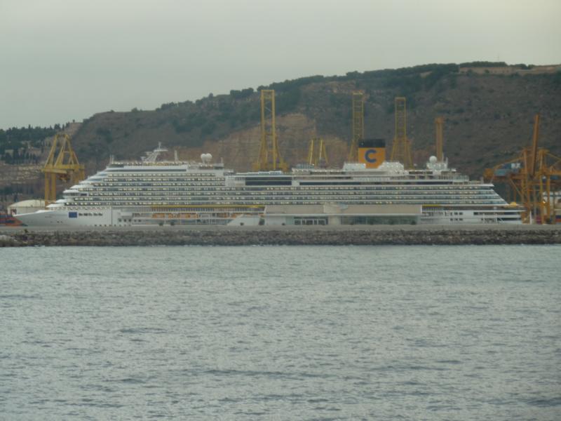 Im Hafen von Barcelona erblickte ich das Schwesterschiff der Costa Concordia. Ich hoffe, dass Käptn Schettino dort nicht sein Unwesen treibt.