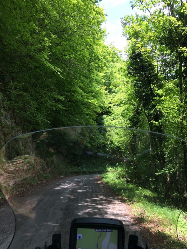 Das erinnerte mich an meine Gardasee Tour vorletztes Jahr. Da habe ich mich (mit meinem Sohn auf dem Sozius) auf so einem Berg Sträßchen ebenso festgefahren - aber dann wieder umgedreht
