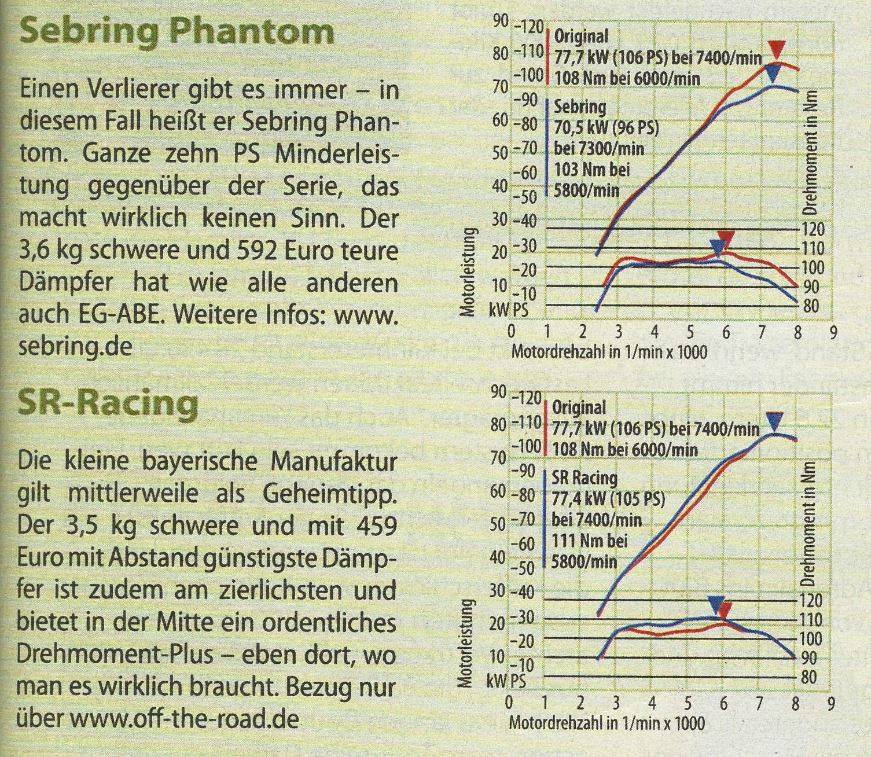 nachdem ich im www und hier im Forum konkret nichts gefunden habe: Gibt es oder gab es mal einen halbwegs glaubhaften Test der ganzen Schalldämpfer, insbesondere in Sachen Leistung? Die Hersteller-Diagramme nehme ich nicht so ernst...