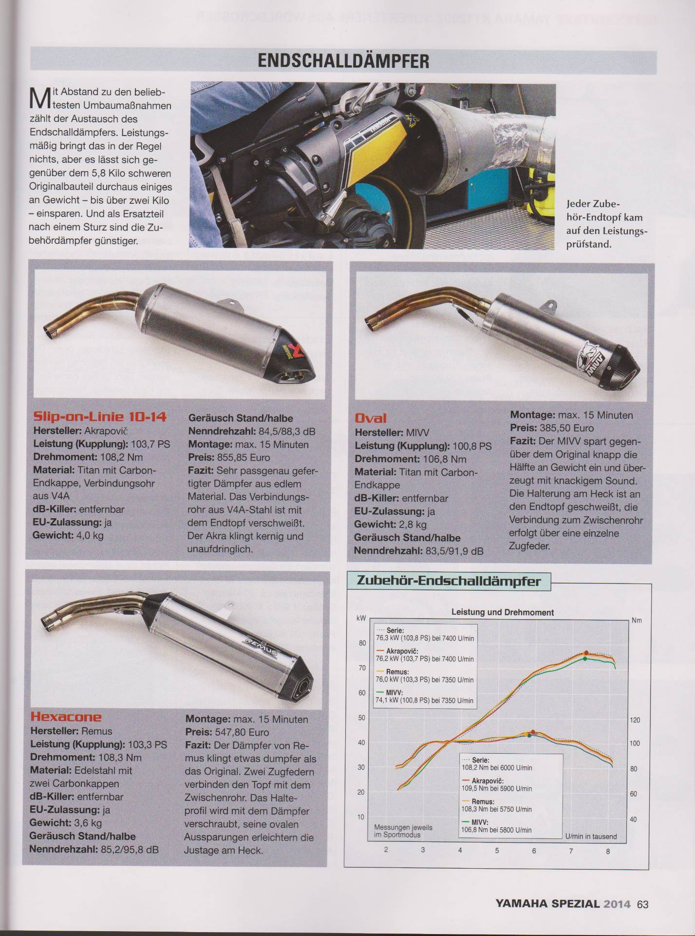 - Akrapovich - sehr gut verarbeitet, minimal lauter als Original, offizieller Yamaha Ausrüster, teuer