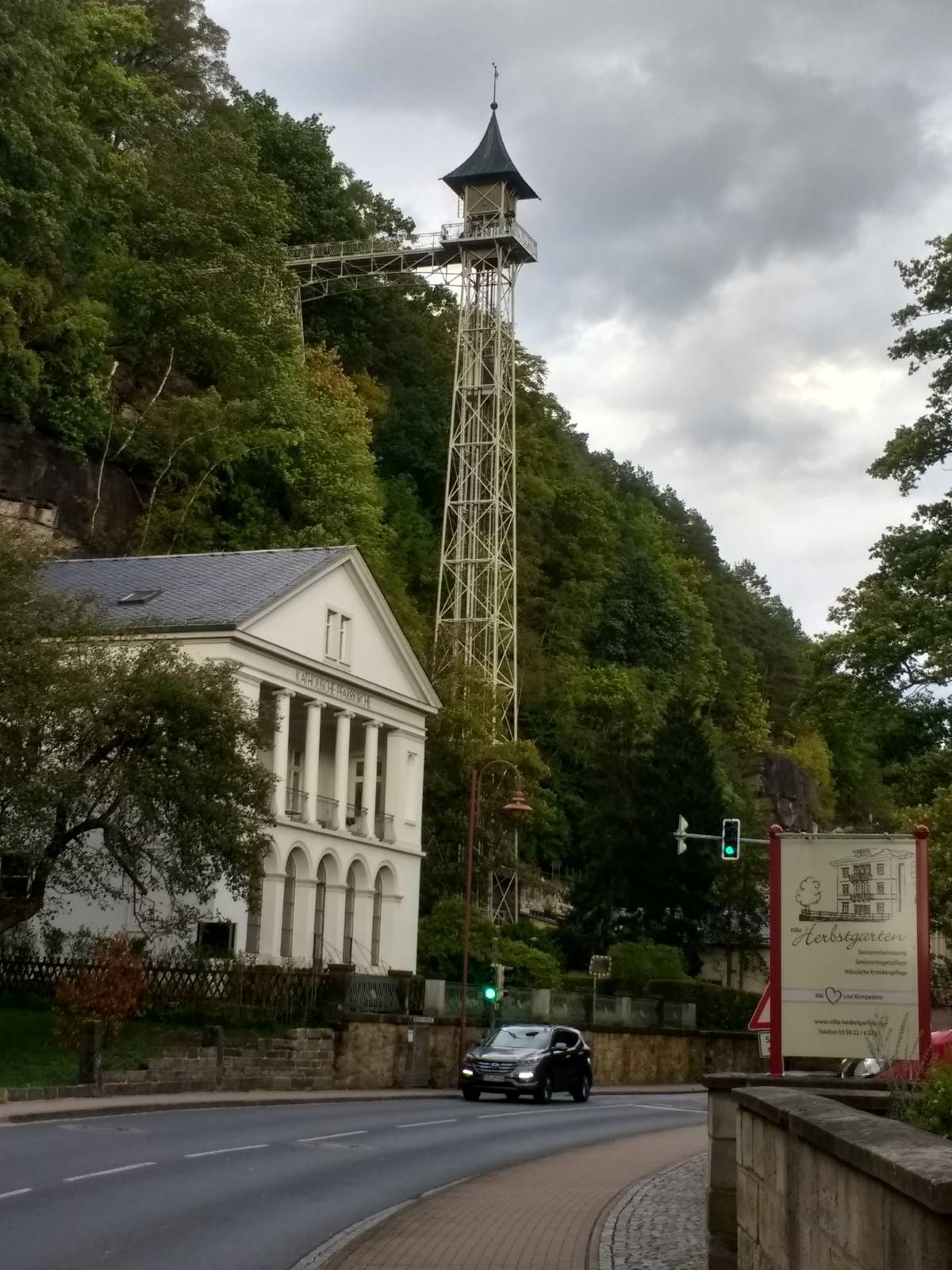 Mit dem Aufzug in Bad Schandau sind wir auch schon gefahren.