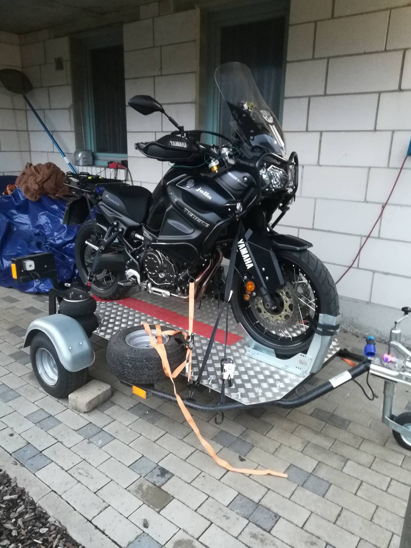 Vor der Endscheidung Hänger oder Bus stand ich auch vor einigen Jahren .Da ich aber auch ca. 30000 km im Jahr mit dem Pkw unterwegs bin habe ich mich dann für einen Hänger (brauchte sowieso einen Lastenanhänger ) entschieden denn ein Transporter braucht ja doch mehr Treibstoff . Die Anforderungen waren : 100 km/h-Zulassung ,gebremst ,möglichst viel Fäche (250cm mal 150cm ) und ein geschlossener Boden .Damals war der Agados Kangaroo 15 (https://www.agados.de/pkw-anhaenger/mot ... -gebremst/ ) meine Wahl.Bei einer Nutzlast von über 800 kg passen theoretisch 3 Bikes drauf wenn man stapelt und es nicht so Big-Bikes wie meine Tenere