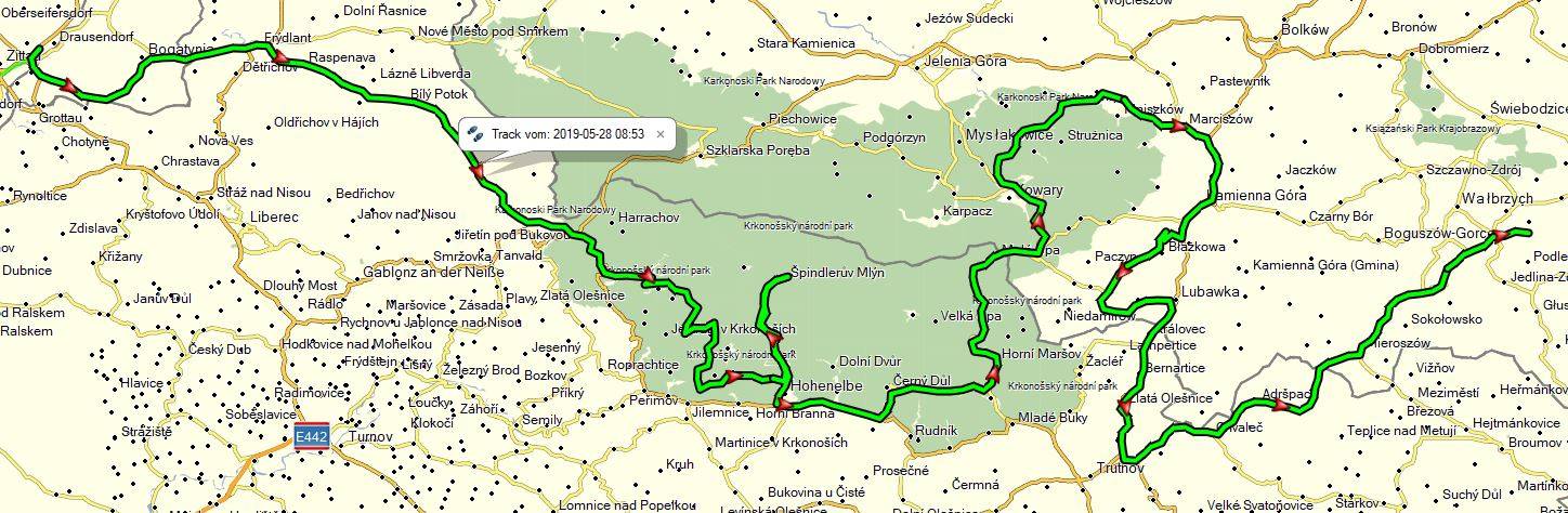 So wie meine WetterApp es angekündigt hat… in der Nacht hat es angefangen zu regenen, naja mehr zu schütten und ich sollte die ganze Fahrt vom Regen verfolgt werden. Also die Regenklamotten drüber gezogen und los. Straßentechnisch hat mich gleich eine verlochte Straße nach Polen empfangen. Naja, für was haben wir eine XT. Der Straßenzustand in Polen ist nicht der Beste. Zumindest auf den Sträßchen, wo ich lang gefahren bin. Diese Tour war nur 300km lang, gebraucht habe ich aber gute sechseinhalb Stunden und das immer im Regen. Mittendrin habe ich dann irgendwo in 800m Höhe eine Wanderhütte gefunden, die sogar Platz hatte für meine Maschine. Dort habe ich die erste Pause gemacht. Wenn man mal eine PP macht, muss ja das ganze Gedöhns ausgezogen werden. Macht bei 5°C und Dauerregen also besonders Spaß. Dafür war die Hütte aber perfekt. Noch was kleines gegessen und getrunken und weiter gings. Auch habe ich mir mal die Spindler Mühle angetan. Muß ich nicht noch mal haben. Also gleich wieder umgedreht und wieder runter. Heute bin ich zwischen Tschechien und Polen öfters gependelt, das werde ich morgen auch noch einige Male machen. Einige unbefestigte Wege waren auch dabei. Langsam muss ich mal Geld tauschen. Bis jetzt ging immer die EC Karte ganz gut. Hoffen wir mal auf besseres Wetter.