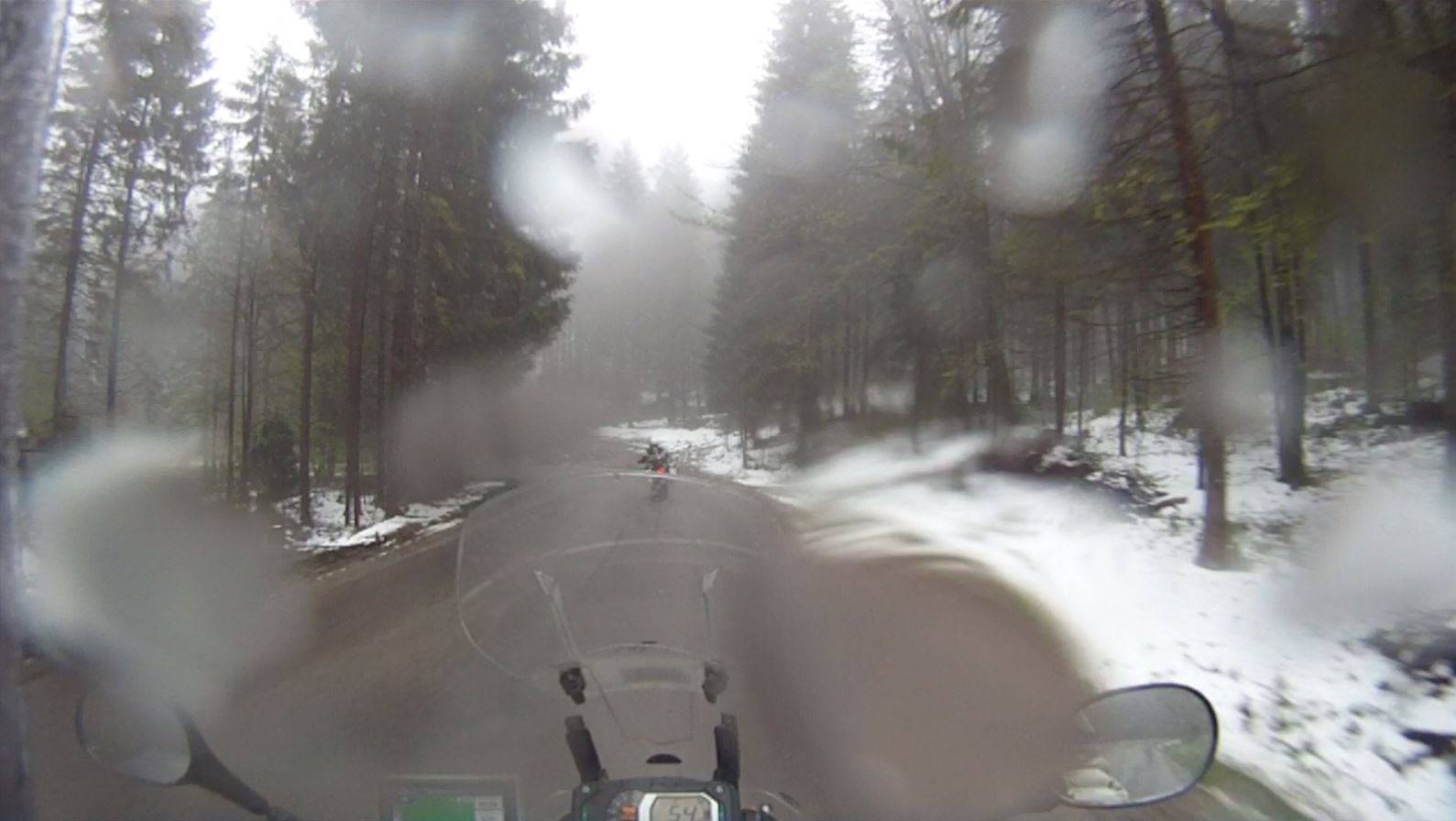 Am 12. Mai fuhren wir direkt nach Osten. Immer schön südlich der Grenze nach Tschechien entlang. Wir starteten bei 3 Grad. Der angekündigte Schneefall blieb uns erspart und es nieselte zu Beginn. Aus Nieselregen wurde Regen, der uns bis zur Grenze in die Slowakei erhalten blieb.