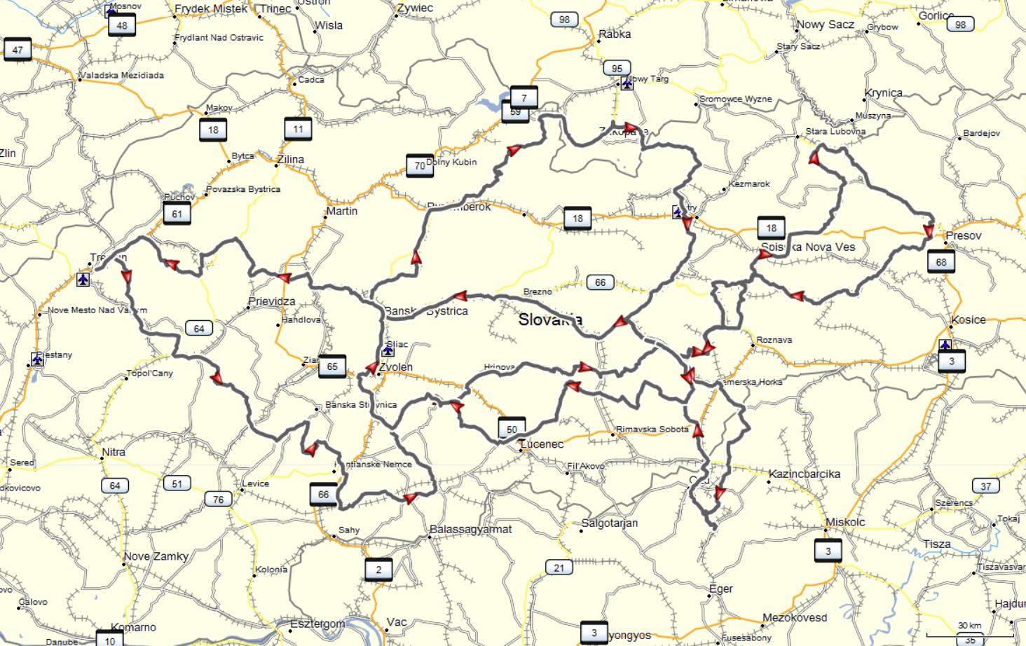 was ich auf deiner Karte zu erkennen glaube, sieht so aus, als ob du bis Presov hauptsächlich auf Hauptverkehrsstraßen unterwegs sein willst.