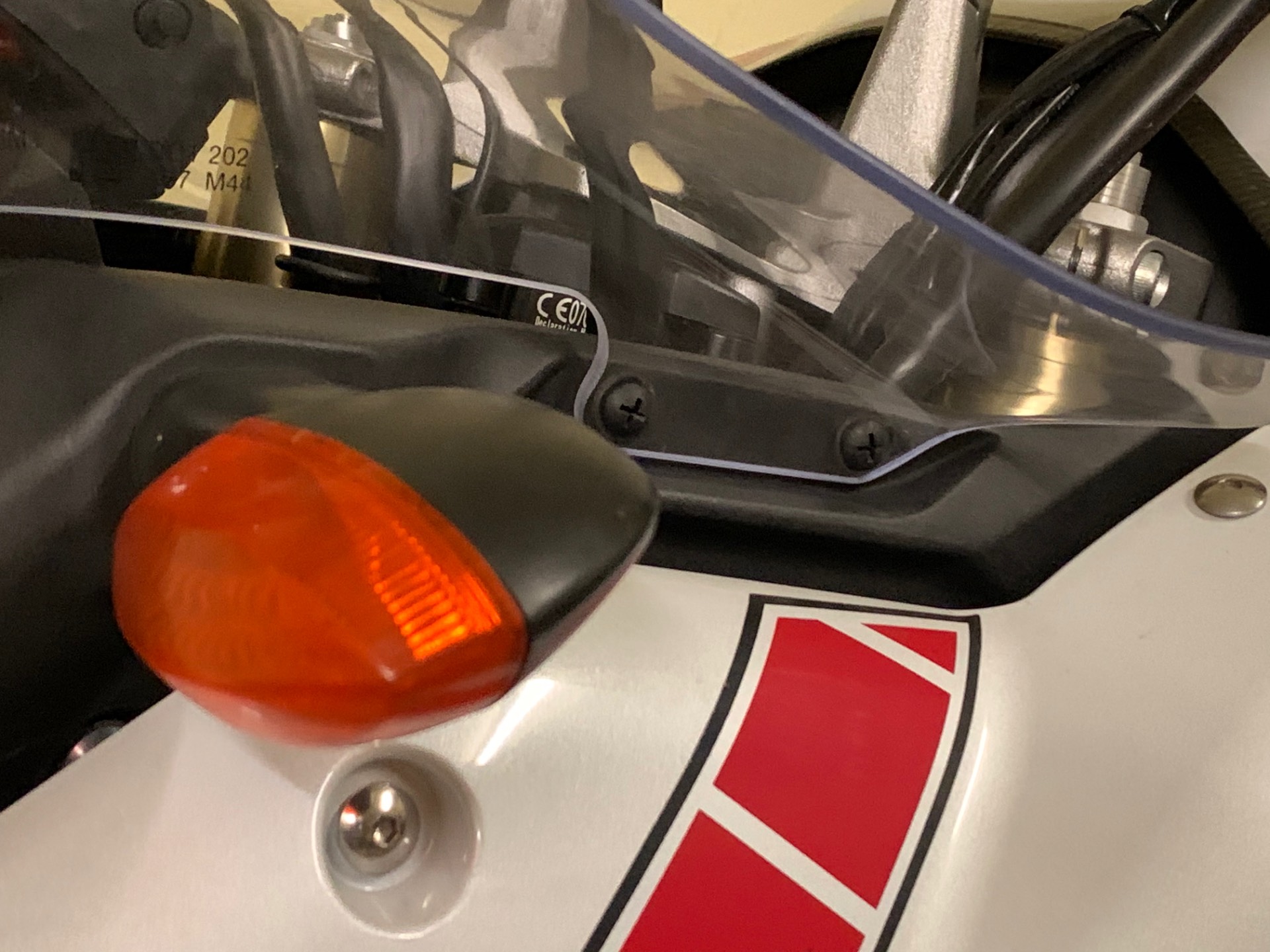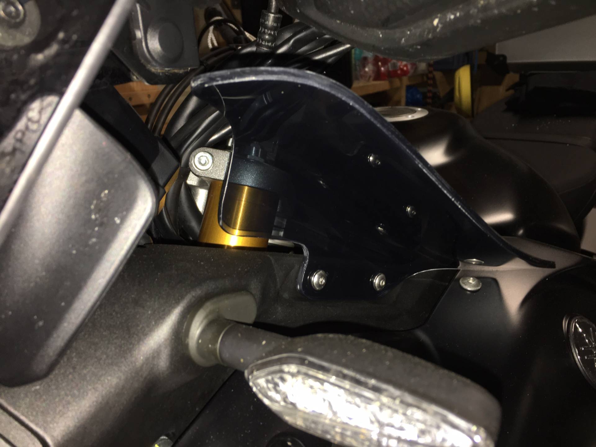Ich musste nämlich das schwarze Kunststoff Dreieck mit dem Yamaha Emblem ( Instrumentenabdeckung ), vorne unter der Windschutzscheibe, abschrauben, um das dritte Loch des Windabweisers daran zuschrauben. Das Problem ist, dass das Dreieck danach nicht mehr drauf passt.